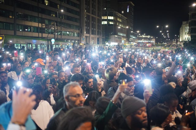 Rapper Stormzy joined thousands of mourners at a candle-lit vigil for 15-year-old stabbing victim Elianne Andam in Croydon.