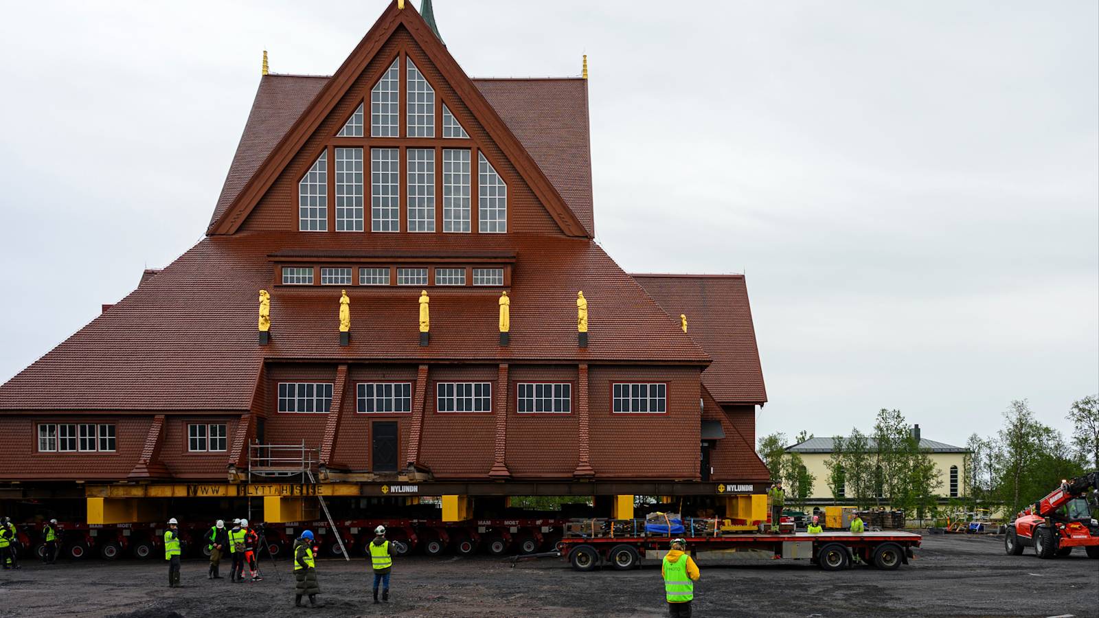 Engineers have widened a major road and dismantled a viaduct to enable the Kiruna Church to be moved.