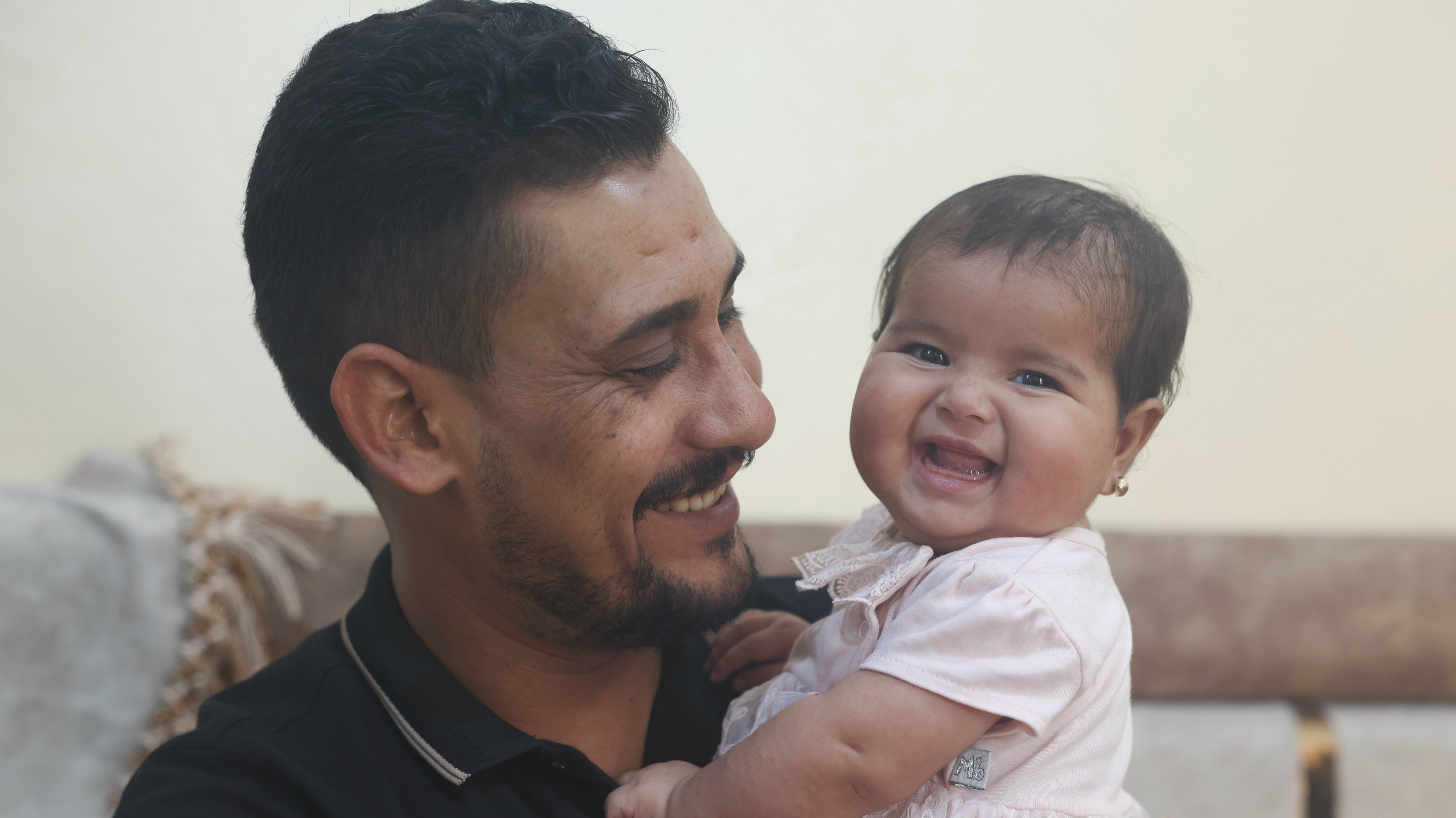 On Saturday, baby Afraa was enjoying herself, swinging on a red swing hanging from the ceiling while al-Sawadi pushed her back and forth.