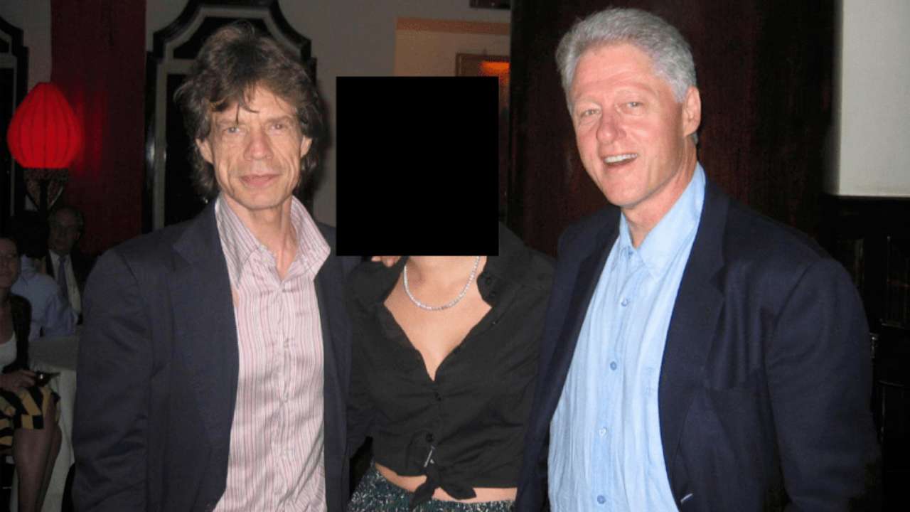 Another photo shows Clinton with the late pop star Michael Jackson, singer Diana Ross and a woman whose face is redacted.