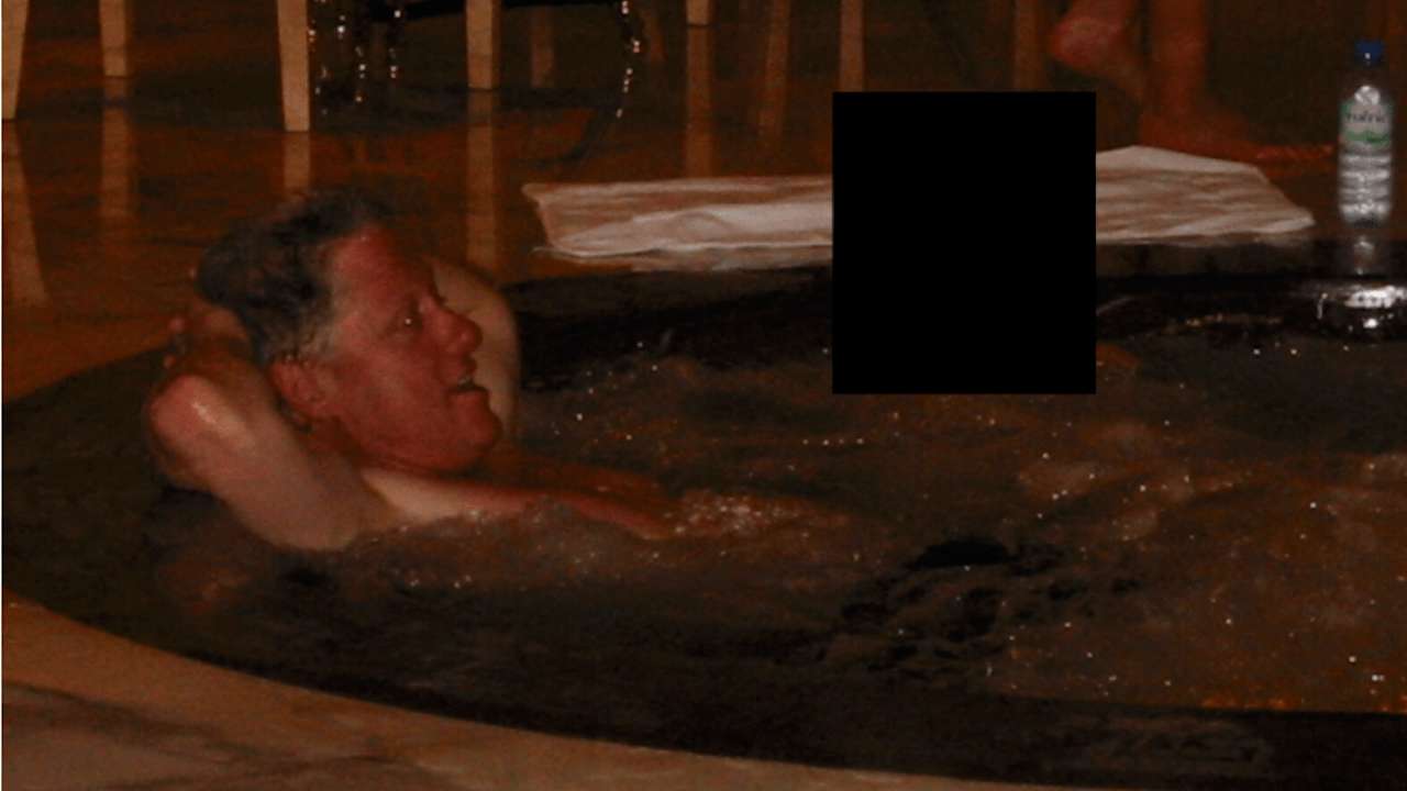 And another photo shows Clinton in a hot tub with a woman whose face is redacted.