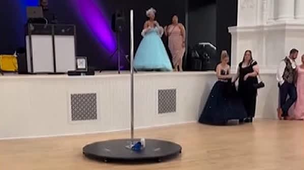 Instead, ball goers got paper decorations, a solo violinist and pole dancing.