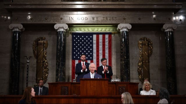 The King’s earlier address to Congress on Capitol Hill saw him become only the second British monarch to do so after his mother Queen Elizabeth II in 1991, and the first British king.