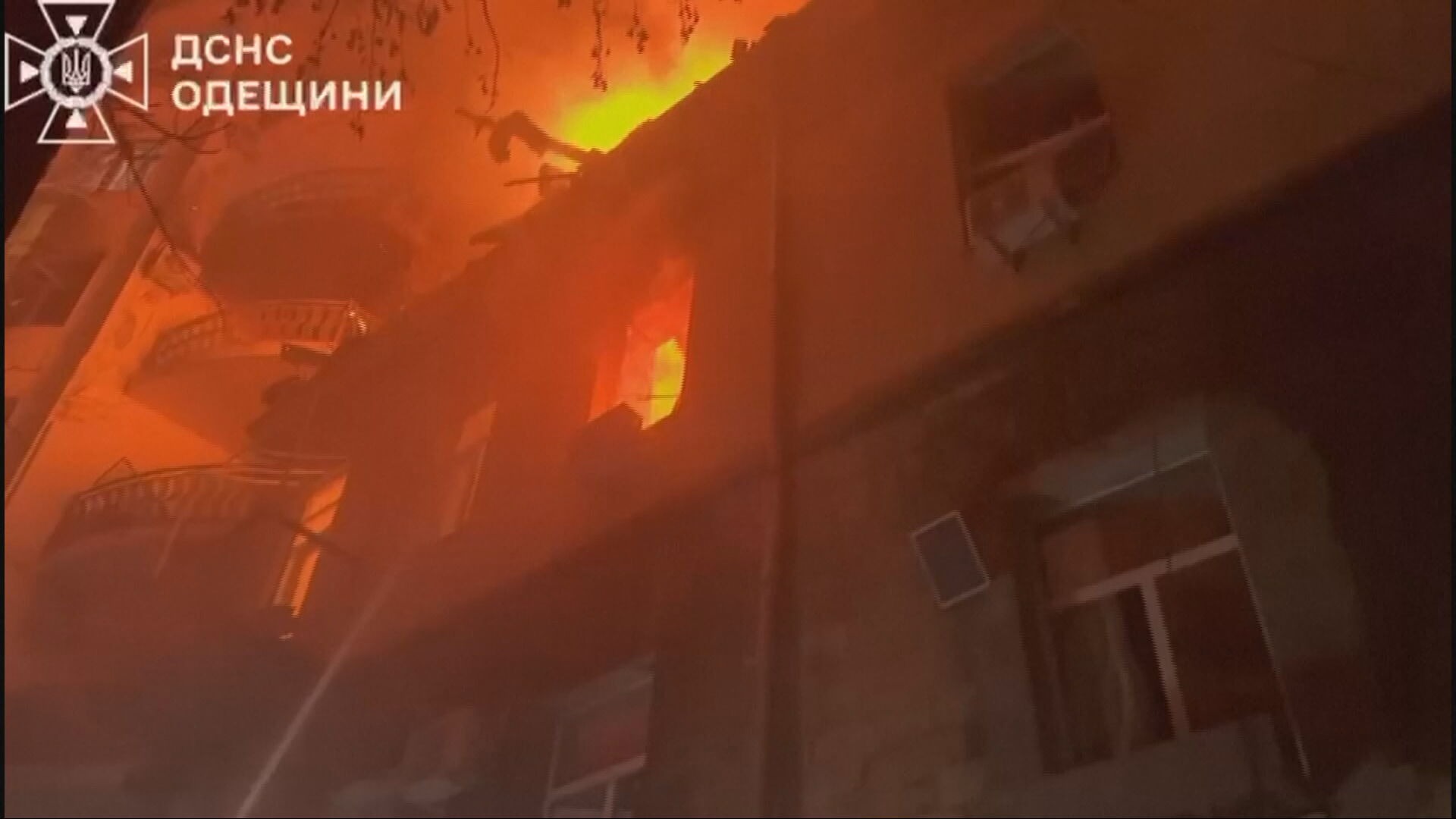 A block of flats in Odesa was targeted by drones, triggering a 150-square-metre fire, Ukraine’s State Emergency Service said on Sunday morning. No one was injured in the attack.