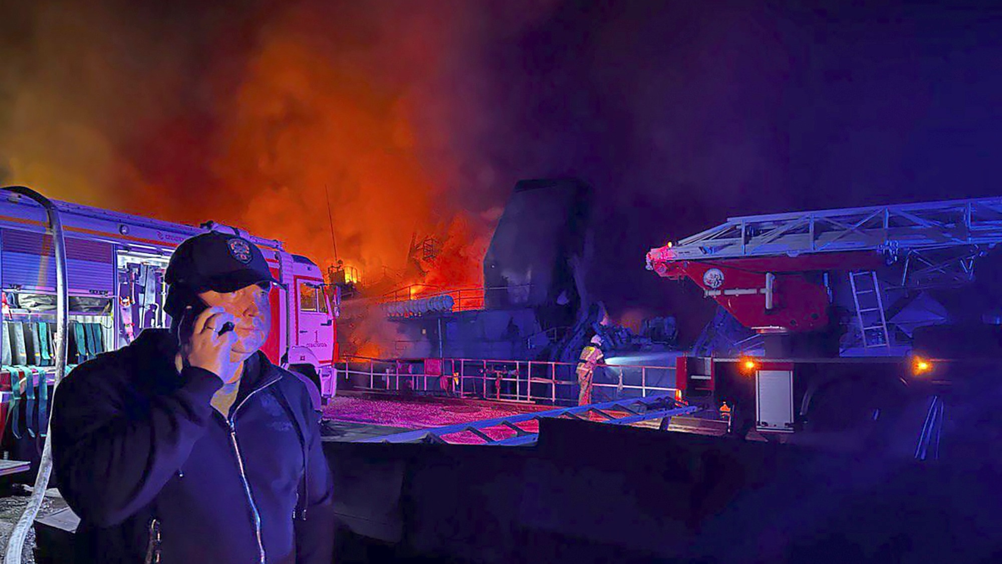 Sevastopol’s Russian-installed governor, Mikhail Razvozhayev, said no-one was injured outside the burning headquarters, and he didn’t provide information on other casualties.
