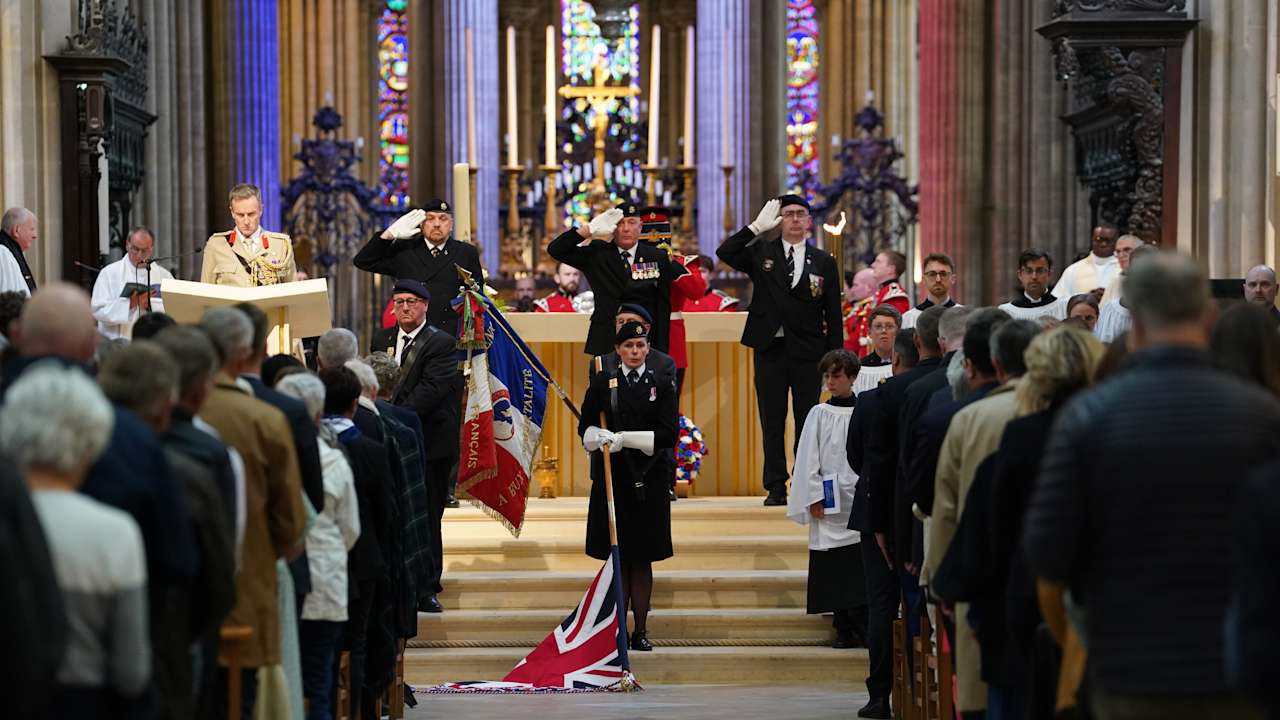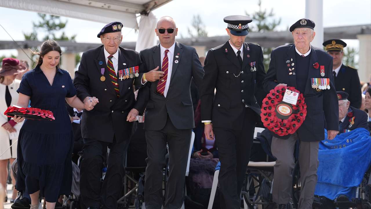 A remembrance service was held at the British Normandy Memorial in Ver-sur-Mer, which was attended by the ever-dwindling number of surviving veterans in their late 90s and older, remembering the thousands who died that day.
