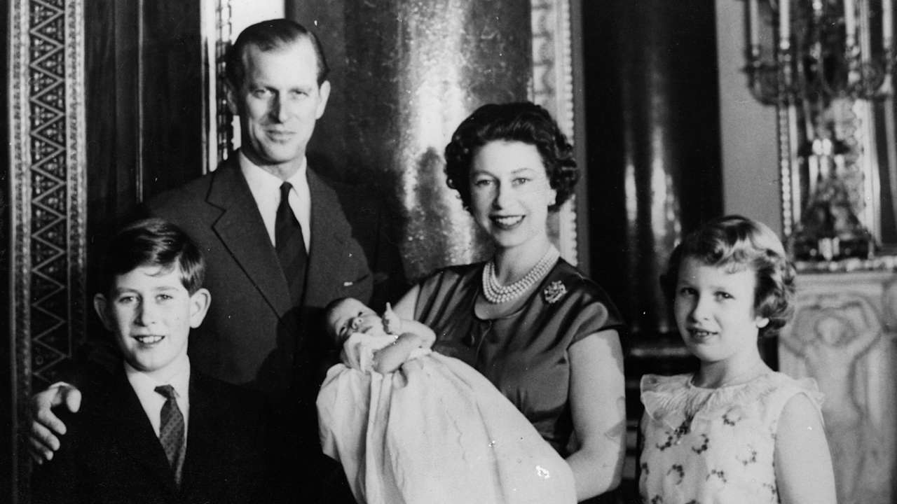 A portrait of the Royal family — Queen Elizabeth II and Prince Philip with Anne and Charles — with Prince Andrew as a baby. / Credit: PA