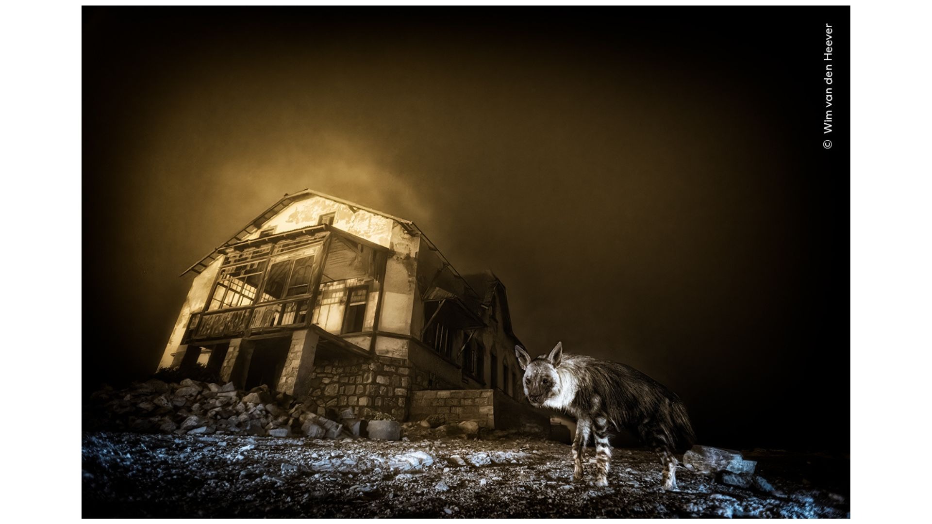 South African wildlife photographer Wim van den Heever was announced as the overall Wildlife Photographer of the Year 2025 for his image, ‘Ghost Town Visitor,’ depicting a brown hyena, the rarest hyena species in the world, visiting an abandoned mining building in Namibia.