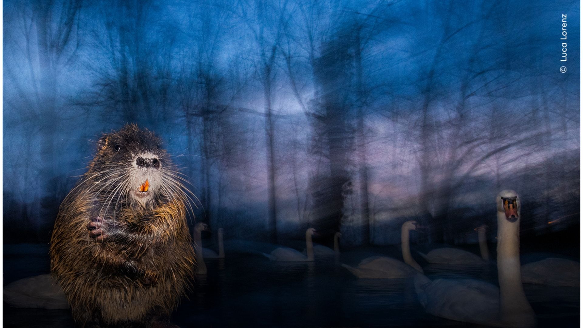 In this photo, one of a series, Luca photographed a coypu, a rodent introduced from South America. Having been shipped across the world for the fur trade, coypu have since established many feral populations.
