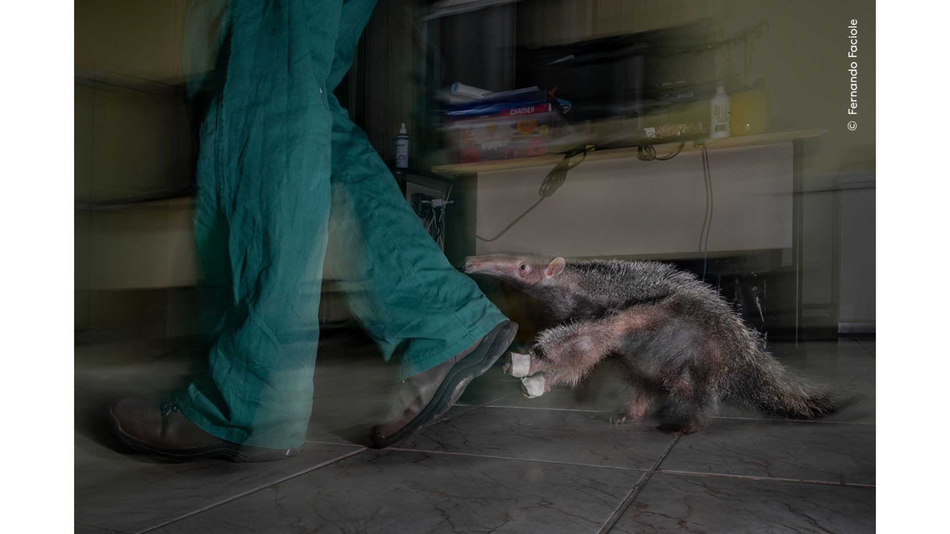 “Fernando wanted to highlight the consequences of road collisions, a leading cause of the decline in giant anteater numbers in Brazil. This pup’s mother was killed by a vehicle, and the hope is that it will be released back into the wild after being encouraged to develop crucial survival skills by its caregiver.