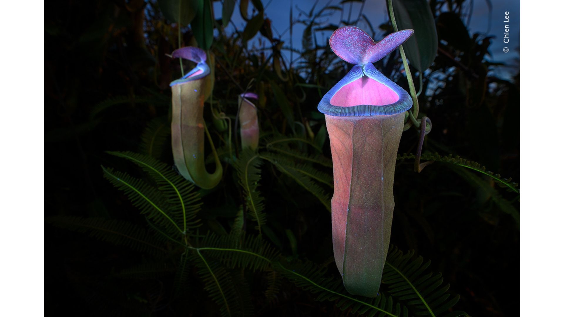 “Some carnivorous pitcher plants reflect UV light on certain areas as part of their ‘display’. They use colour, scent and nectar to lure their prey into pools of digestive juices at the bottom of their leaves.”