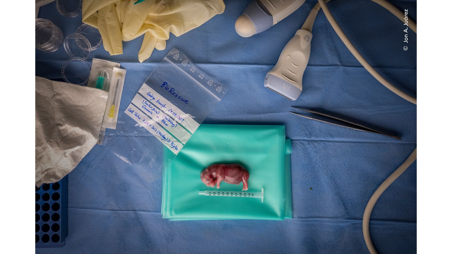 “This southern white rhino foetus, which did not survive due to an infection, was the result of the first successful rhino embryo transfer into a surrogate mother through IVF. This breakthrough paves the way for saving the rare northern white rhino from extinction, as scientists can take the next crucial steps towards transferring the first northern white rhino embryo into a southern white rhino surrogate.”