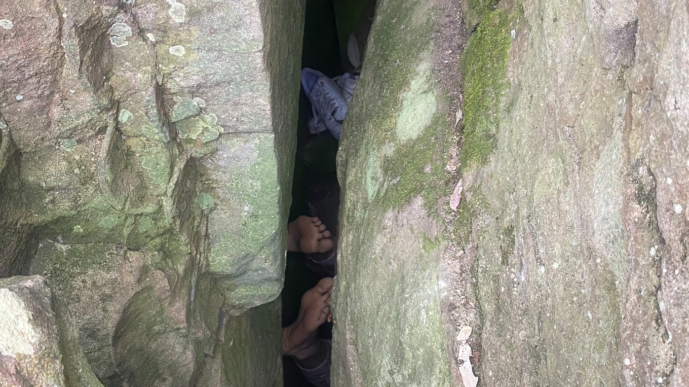 While trying to retrieve it, the 23-year-old slipped and fell into a rock crevice, becoming wedged between two large boulders.