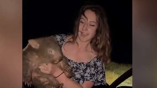 The video, reportedly deleted from an Instagram account that has since been made private, and TikTok on a now-deleted account, shows a woman running across the road while holding a baby wombat.