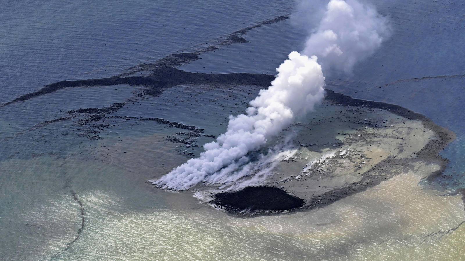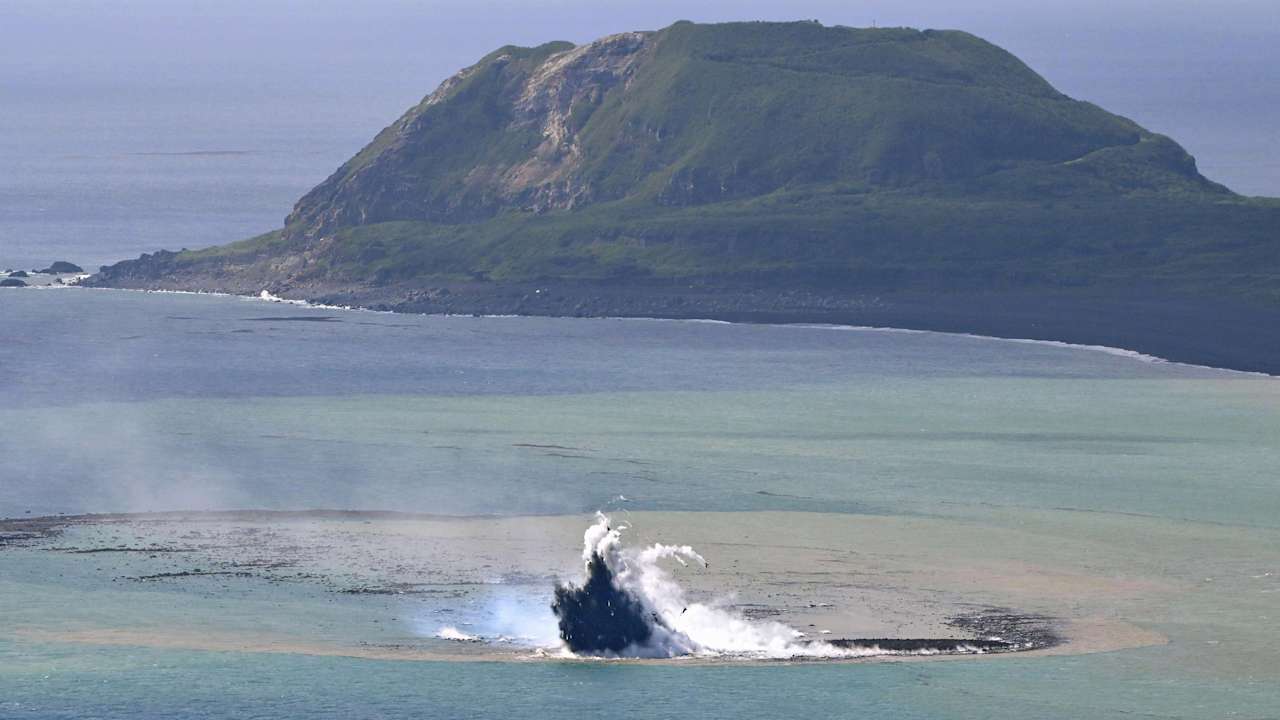 The eruption of an undersea volcano off the coast of Japan has provided a rare view of the birth of a tiny new island – though experts say it may not last long.